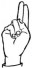 На ћирилици написано БОРИС КЛЕМЕНОВИЋ састоји се из 15 слова [?]. Исписано ћириличном једноручном азбуком за глувонеме: